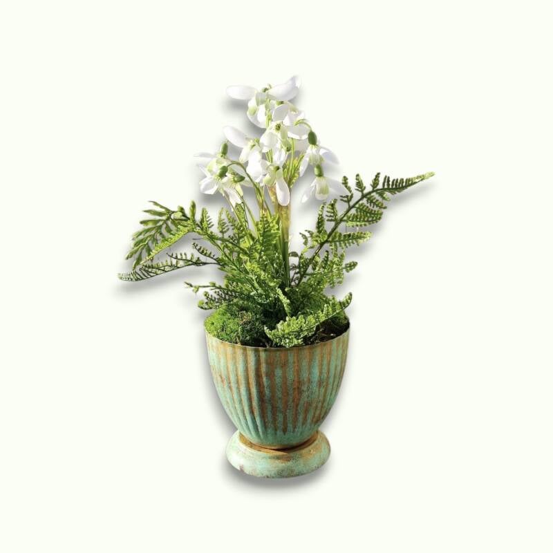 Holen Sie sich die Magie des Waldes nach Hause mit unseren realistischen, langlebigen und pflegeleichten Seidenblumen-Arrangements aus Schneeglöckchen und Moos. Perfekt als Tischdeko, auf Sideboards oder als Geschenk – bringen Sie Frische und Eleganz in Ihr Zuhause.
