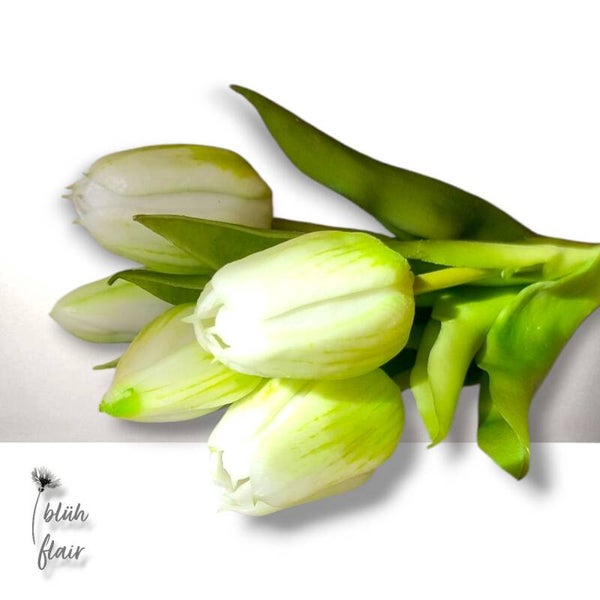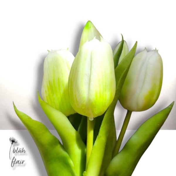 Hochwertiger und naturgetreuer künstlicher Tulpenbund mit 5 Blüten aus hochwertigem Real-Touch-Material.