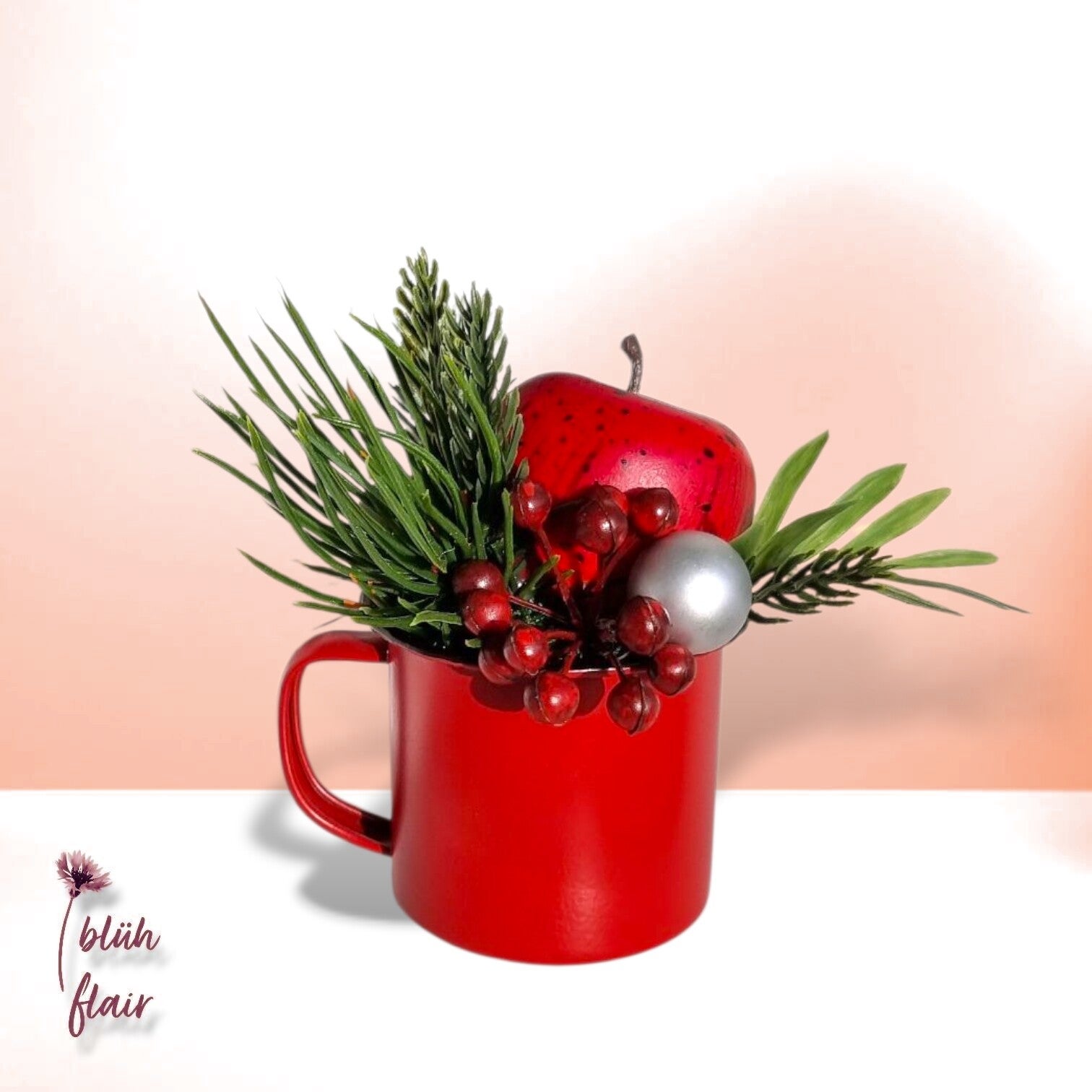 Weihnachtsarrangement: Apfel in Tasse - Apfeltee - ⌀11xH12