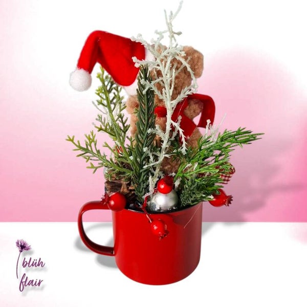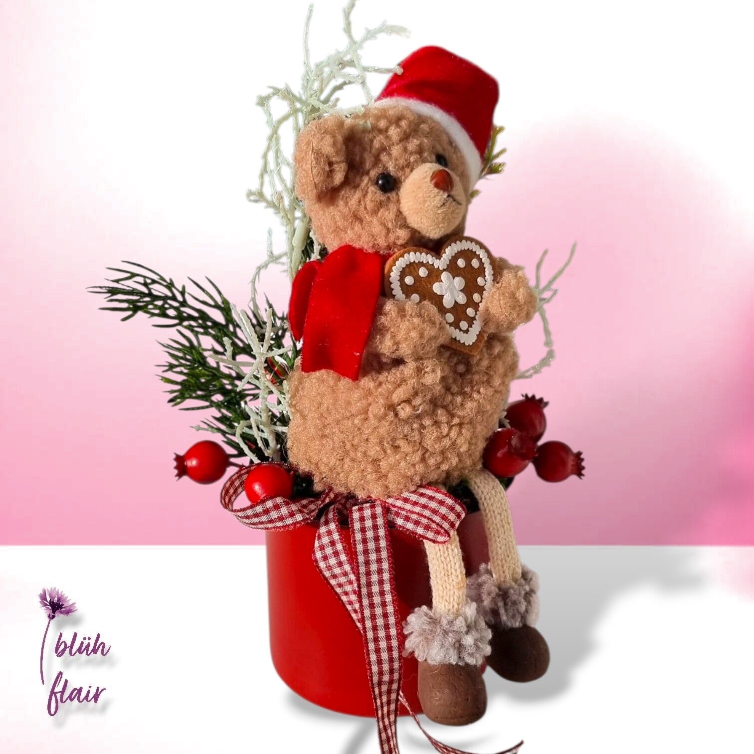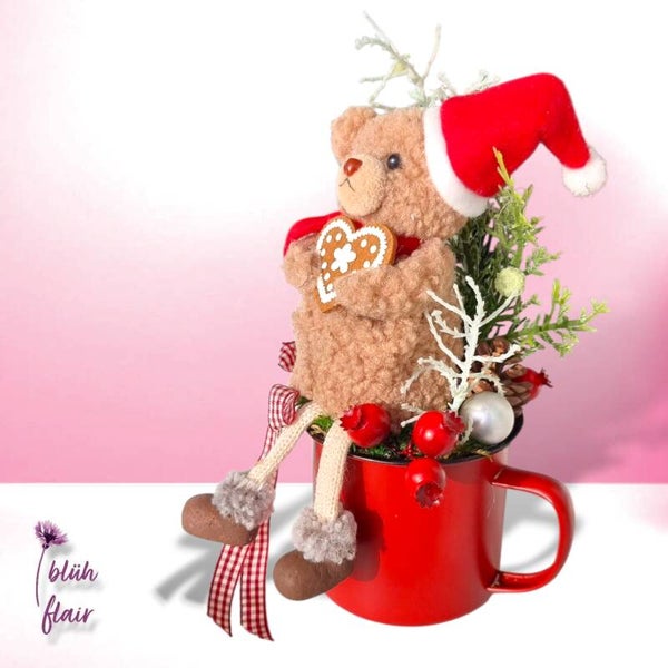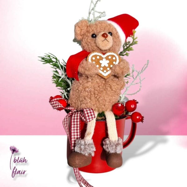 Weihnachtsarrangement: Teddy auf Tasse - Teddys Weihnachtsbecher Nr.2 - ⌀14xH20