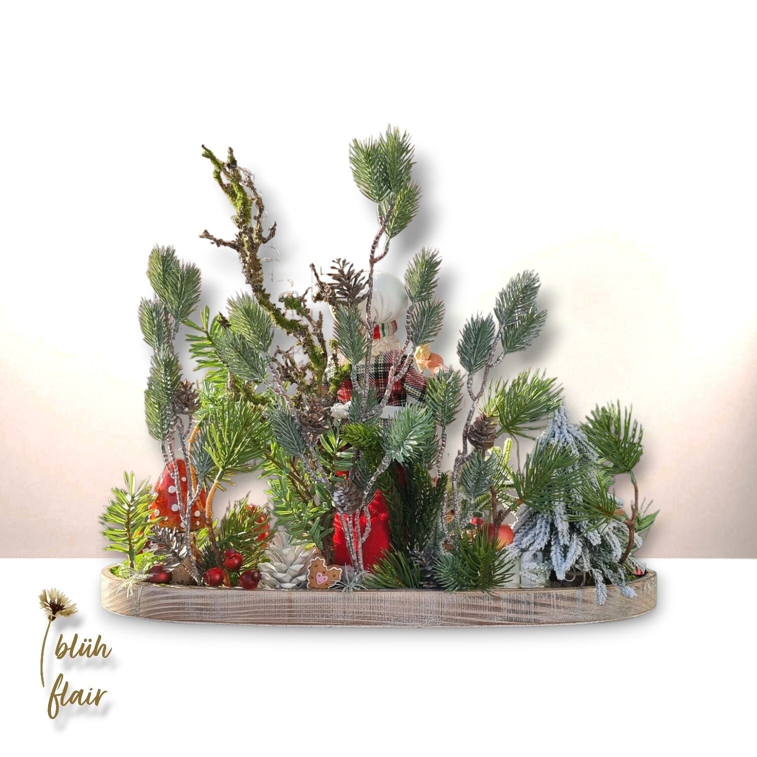 Weihnachtsgesteck: Weihnachtsbäckerei auf Tablett - "Weihnachtsbäckerei" - L47xB20xH39cm
