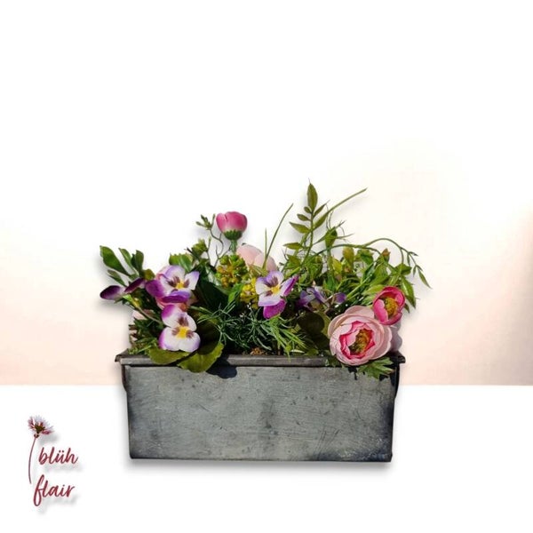 Holen Sie sich den vollen Charme des Frühlings in Ihre vier Wände. Dieser Ranunkel Kasten aus dem Hause Blühflair bietet Ihnen die beeindruckende Blütenpracht und Qualität, die Sie erwarten. Das Arrangement besteht aus täuschend echten Seidenblumen, darunter leuchtende Ranunkeln, die sofort für eine frische und einladende Atmosphäre sorgen. Dank seiner pflegeleichten Eigenschaften ist dieser Kasten ideal für jede Fensterbank oder jeden Tisch und schenkt Ihnen ganzjährig Farbe und Freude.